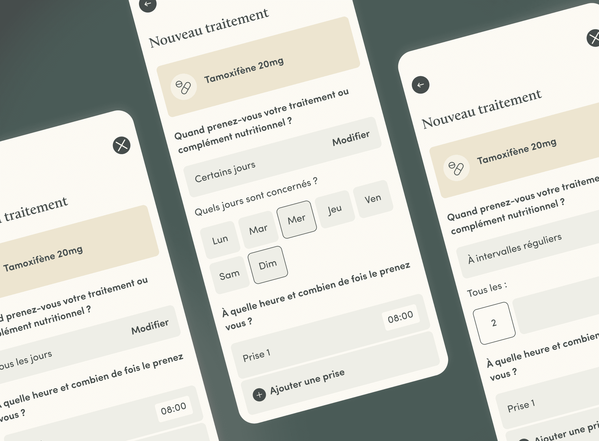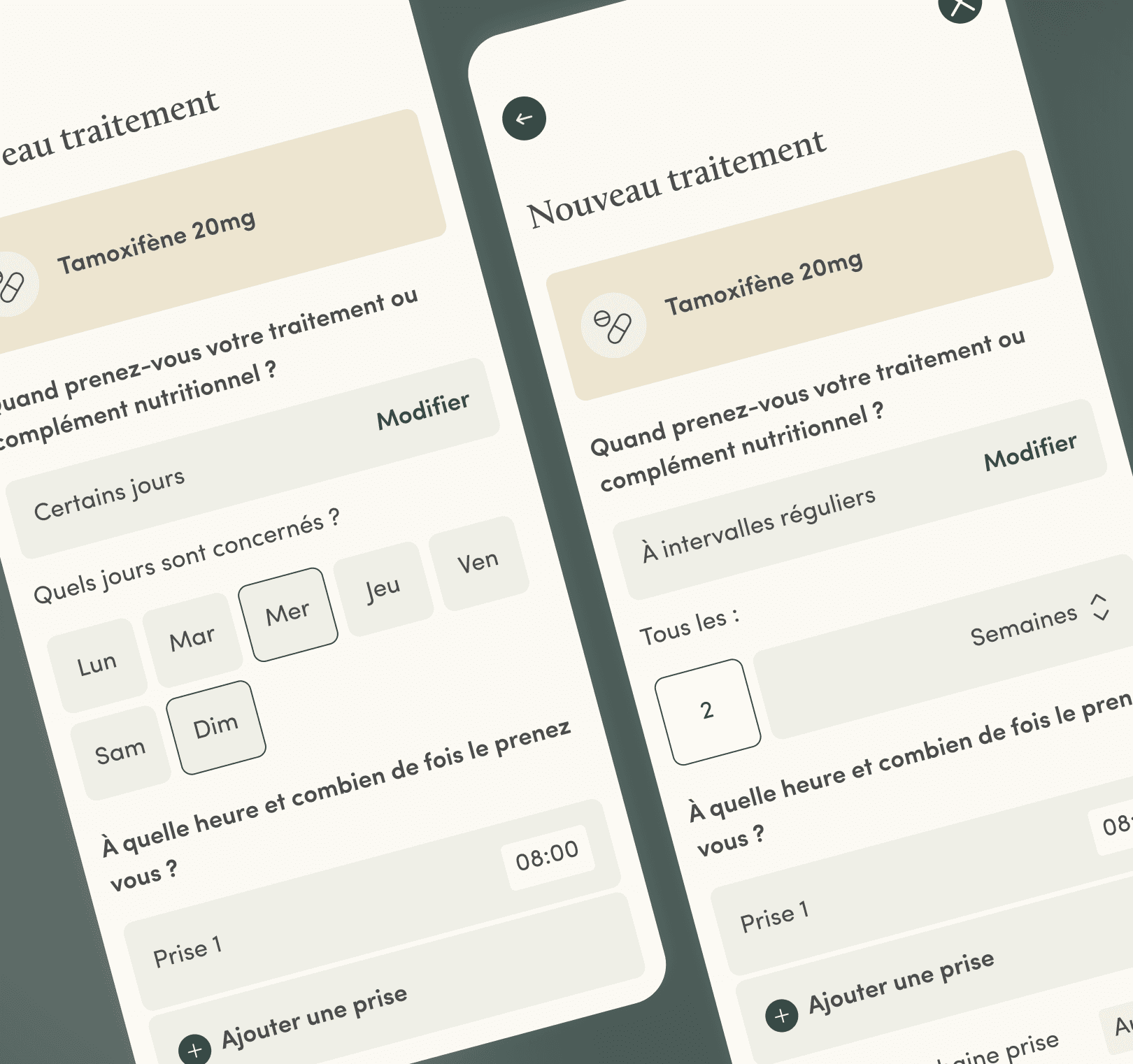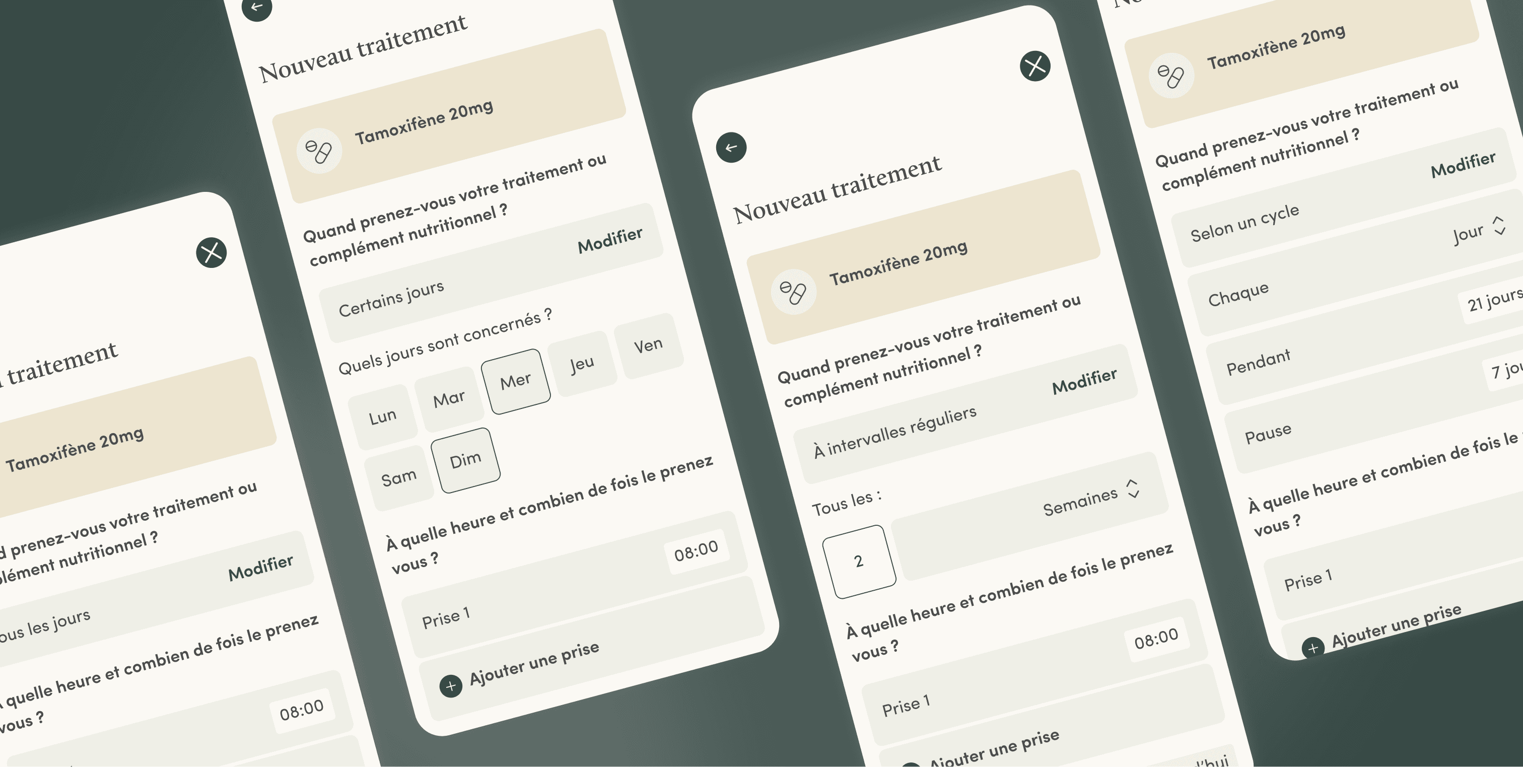 Proposer une fréquence de prise qui s’adapte aux cycles complexes de chimiothérapie n’étant pas disponibles sur pilulier digitaux classiques.