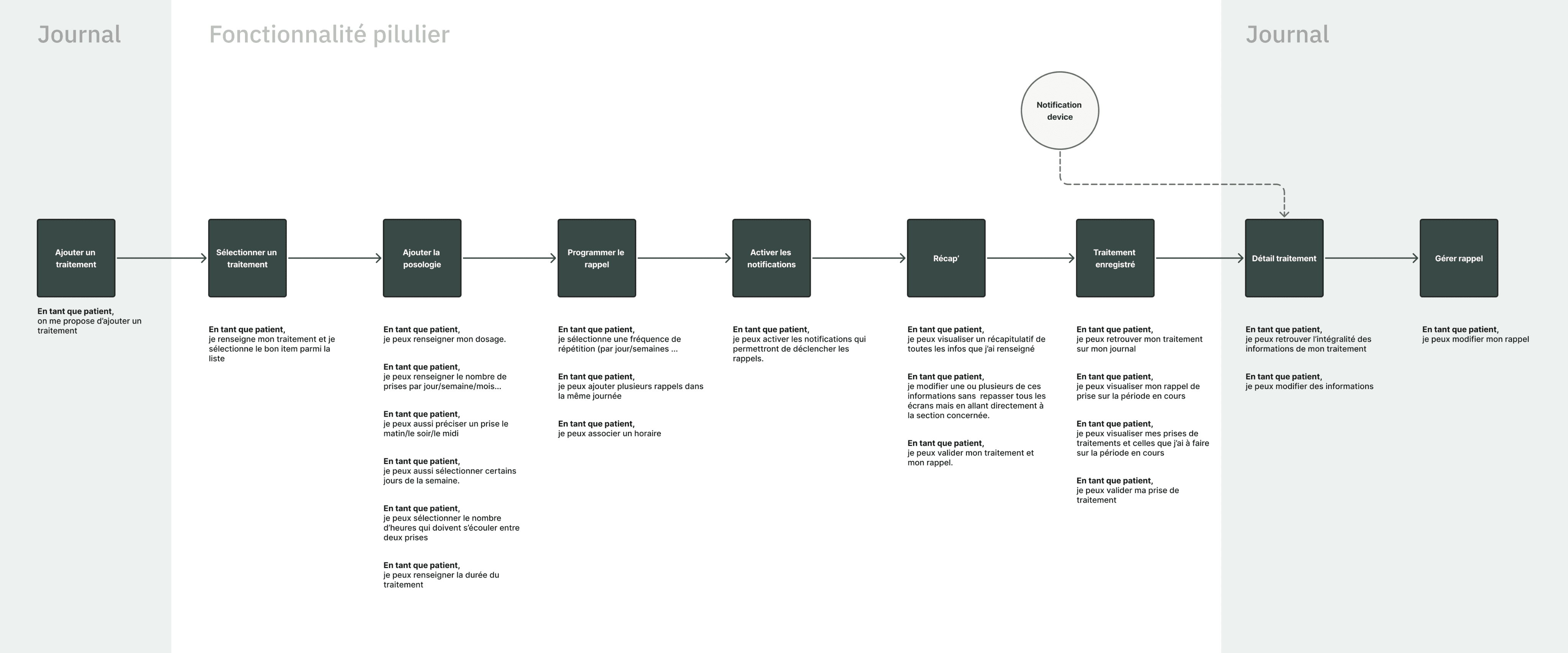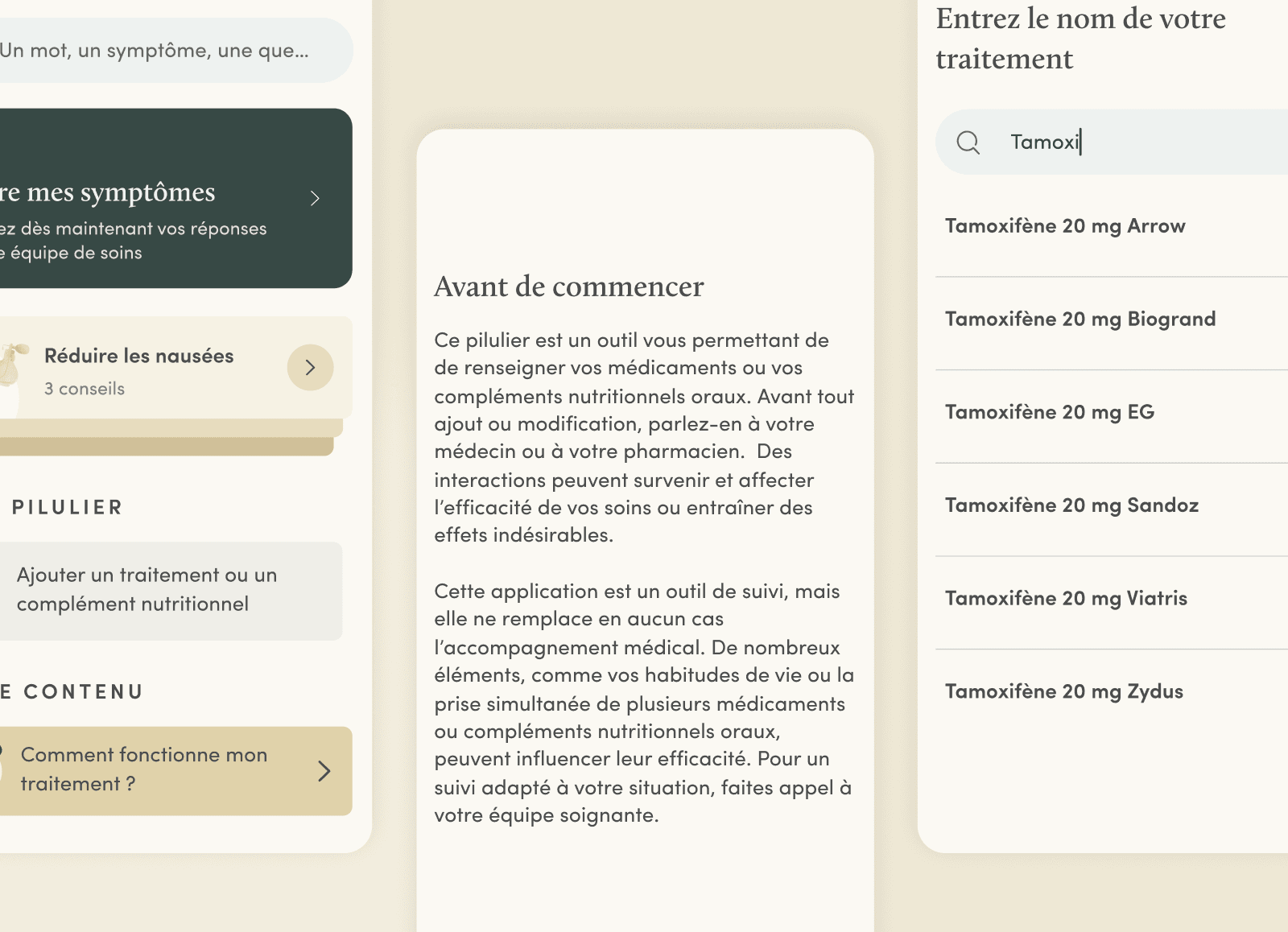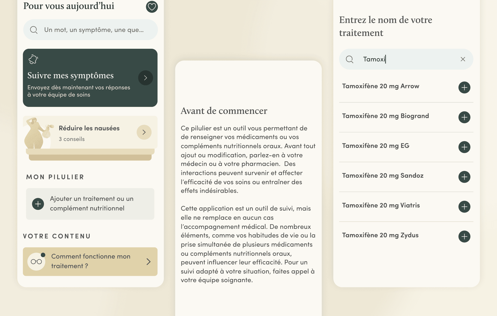 Mettre en place un pilulier digital dans l’application mobile du patient pour lui permettre de renseigner son ou ses traitements, générer des rappels de prises et avoir un historique. Le contenu distribué au patient sera personnalisé en fonction du traitement renseigné.