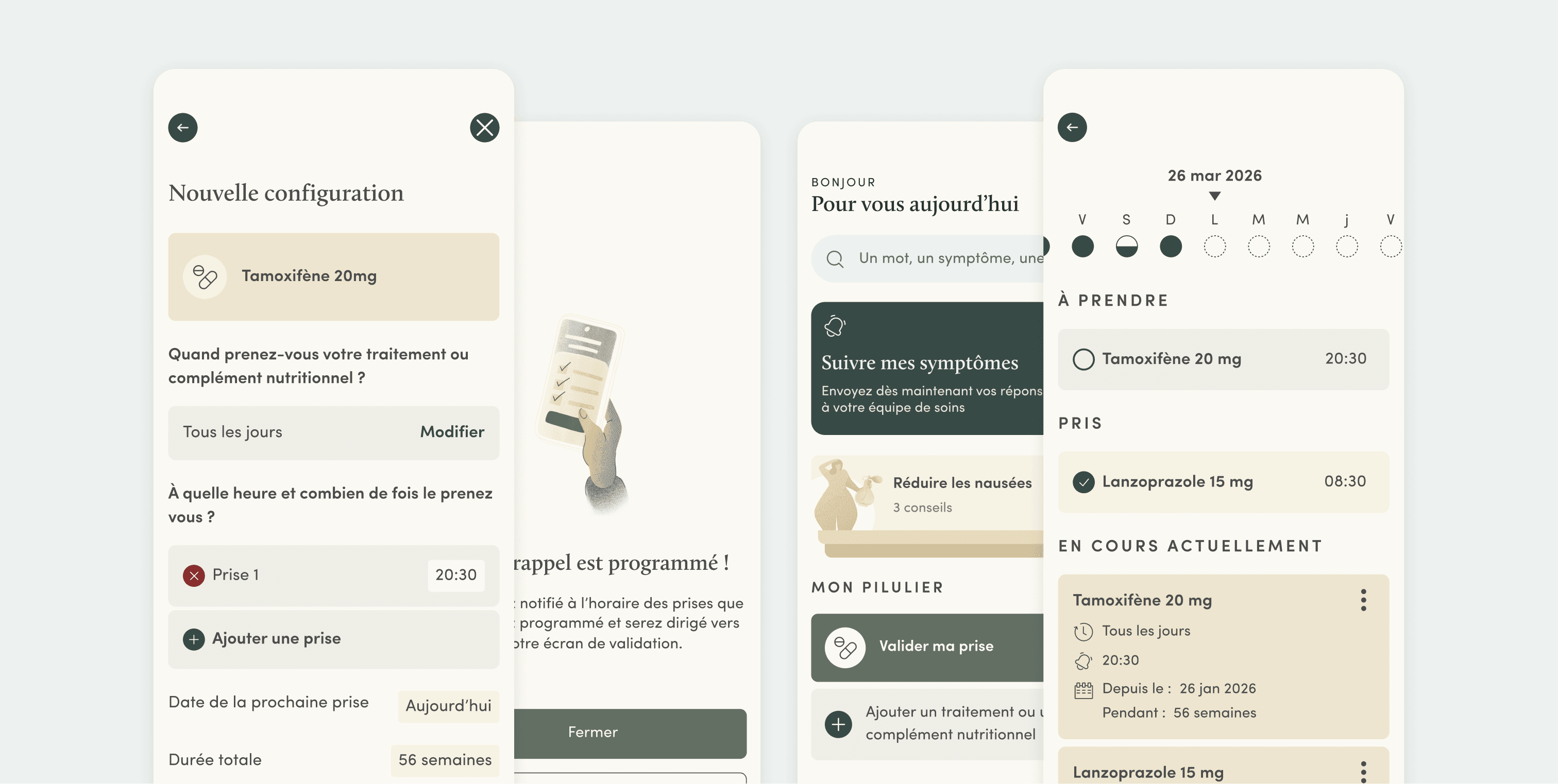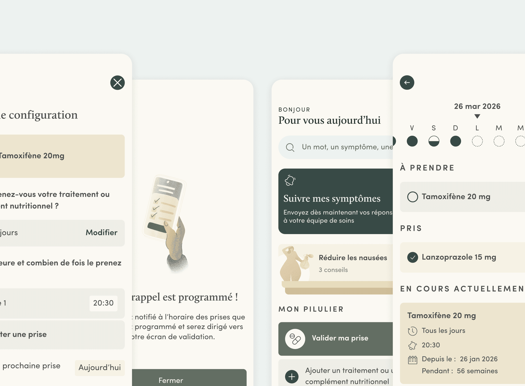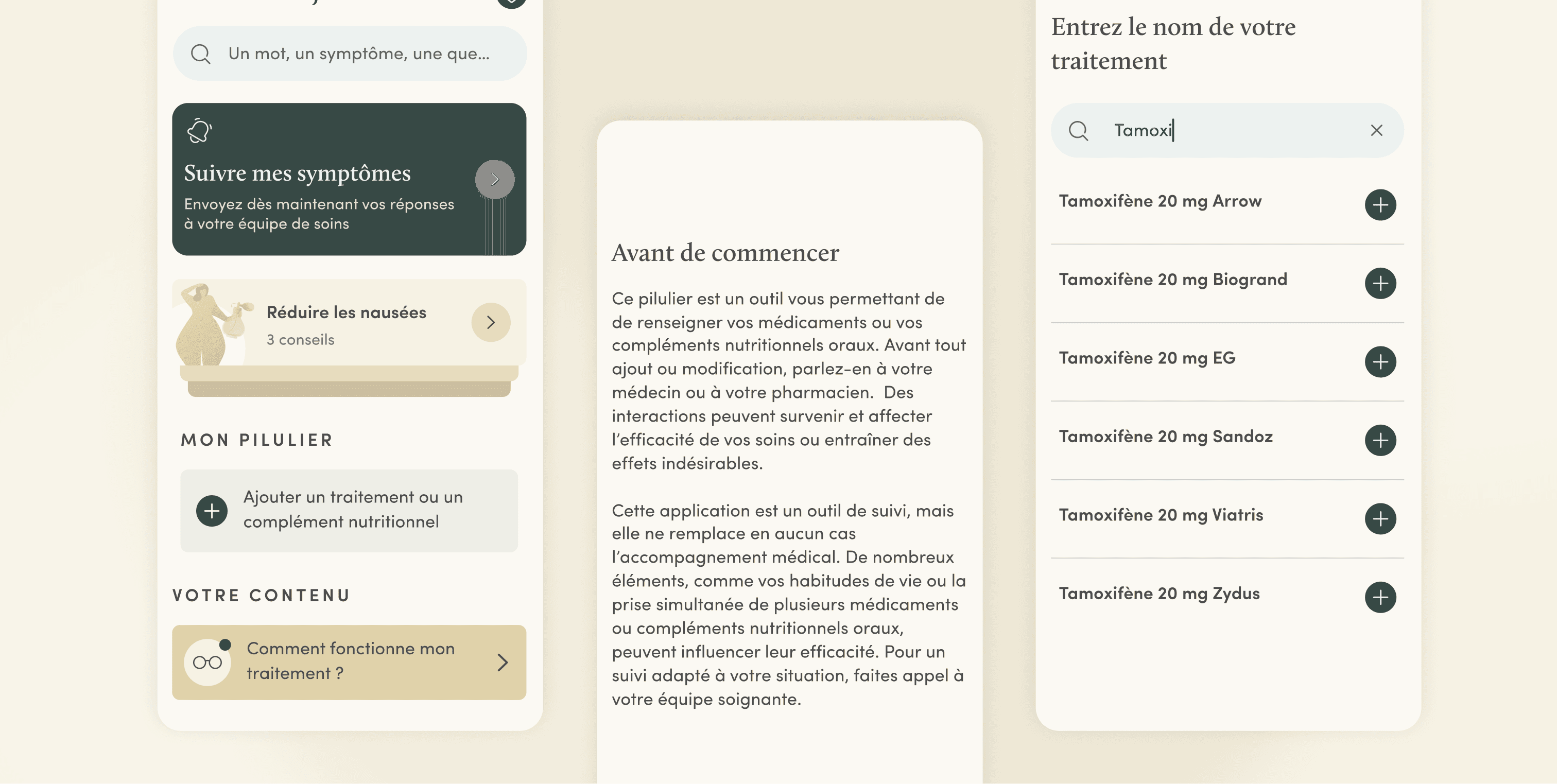 Mettre en place un pilulier digital dans l’application mobile du patient pour lui permettre de renseigner son ou ses traitements, générer des rappels de prises et avoir un historique. Le contenu distribué au patient sera personnalisé en fonction du traitement renseigné.
